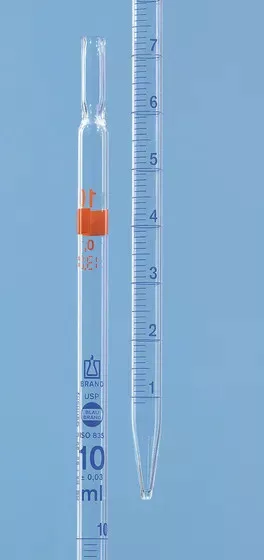 BLAUBRAND AS USP 2-es típusú Mérőpipetta, 21 ml: 0,1 ml, teljes adagolás, DE-MAR-Glas, kék színben,