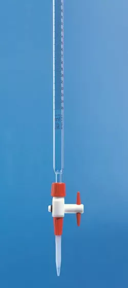 Kompakt büretta 'Economy' SILBERBRAND25 ml : 0,1 ml, Boro 3.3 átlátszó, PTFE zárócsap PP hegygel, fekete fokozat, hibahatárok B osztály szerint