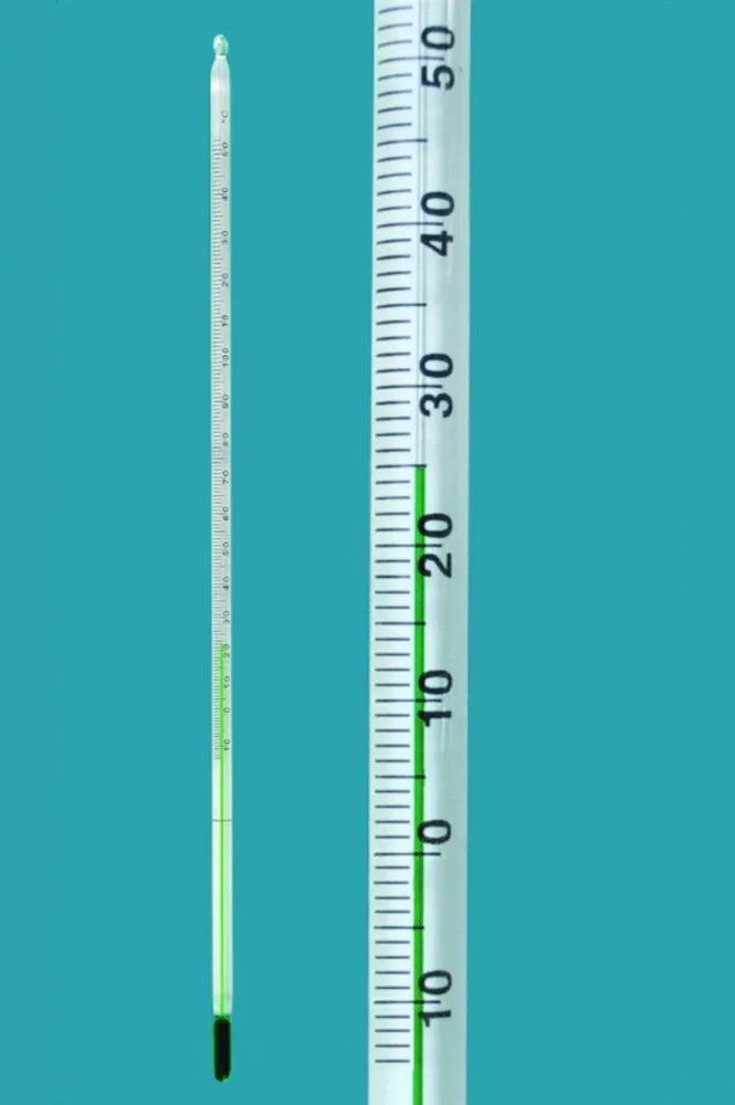 LLG-hőmérők -10...+250:2°C, tömör szárral, 300x5,5-6,5mm, 76mm, merülő, környezetbarát folyadék