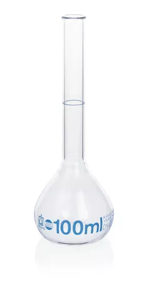 Mérőlombik, boroszilikát üveg, Boro 3.3, BB, kék színben, A osztály, dugó nélkül, 10 ml "W", KB Egyedi tanúsítvánnyal