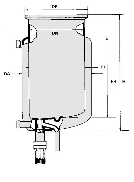 Reaktor síklapos fedéllel típus ADAZ hengeres, leeresztő szelep "T" excenter DN100, ml250