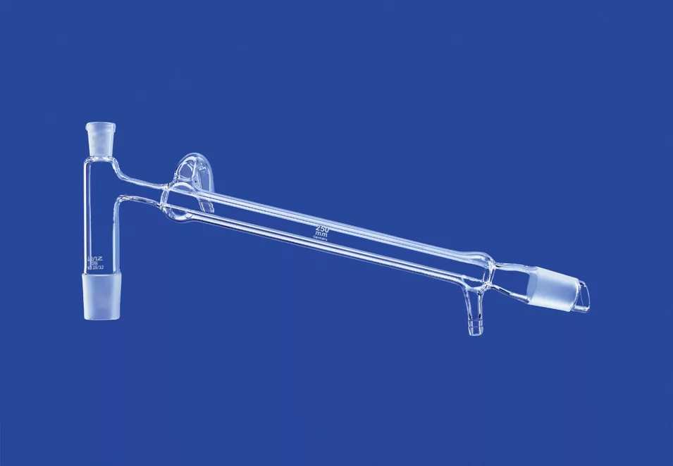 Desztilláló csatlakozó Liebig kondenzátorral és olivás, Csiszolat kúpok NS 29/32, hossza 400 mm, hűtőfelület 210 cm3, DURAN® cső