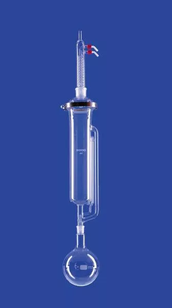 Soxhletnek megfelelő elszívó karimával, űrtartalom 2000 ml,Lapos karimás fedél DN100, bilincs DN100, Dimroth kondenzátorral NS45/40 lombik