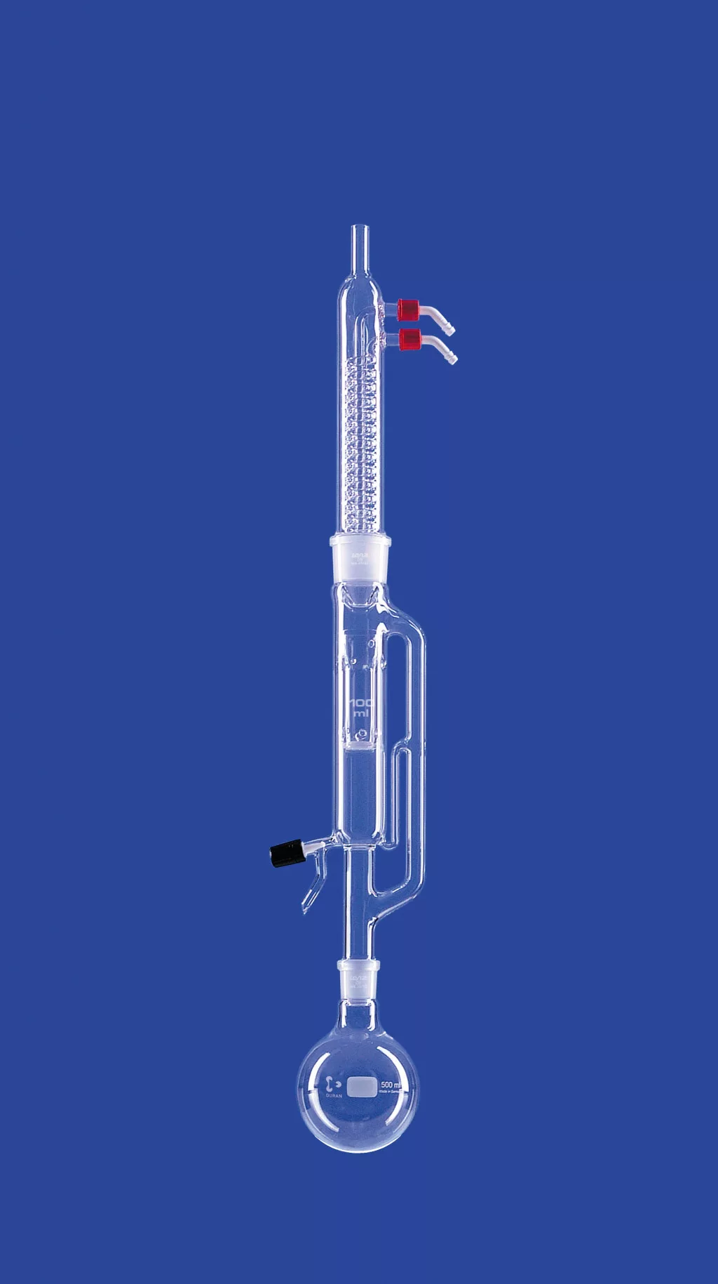 Elosztócső frittel (0. por.) speciális nehéz oldószerekhez,Extraktorhoz 100 ml, DURAN® csőből