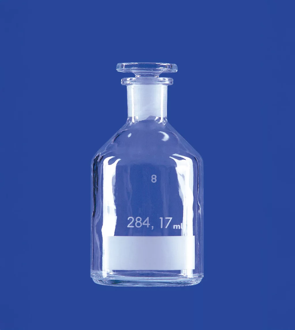 Oxigénmeghatározó palack a Winkler szerint, 250-300 ml NS19/26 csatlakozó , NSglass dugóval, beállított üveggel és dugóval