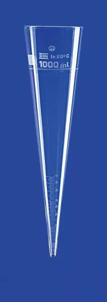 ÜlepítőCsiszolat kúp acc. Imhoffhoz, elzárócsap nélkül, 100 ml-ig terjedő méret, gyűrűjelzés 1000 ml-nél, boroszilikát üveg 3,3