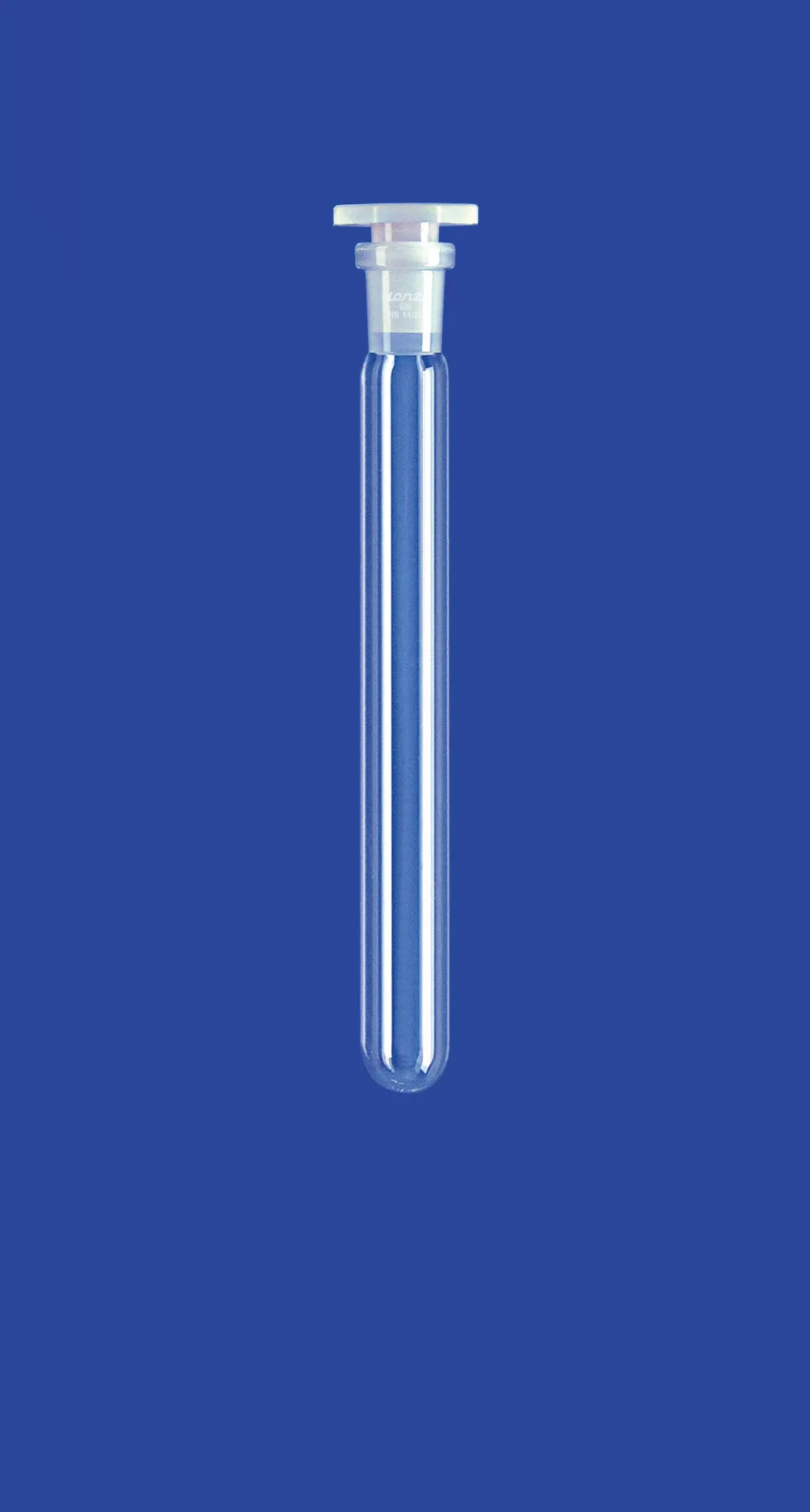Kémcső NS csatlakozással, beosztás nélkül, PE dugóval, foglalat NS 14/23, átmérő 18xmagasság 180 mm, DURAN® csőből