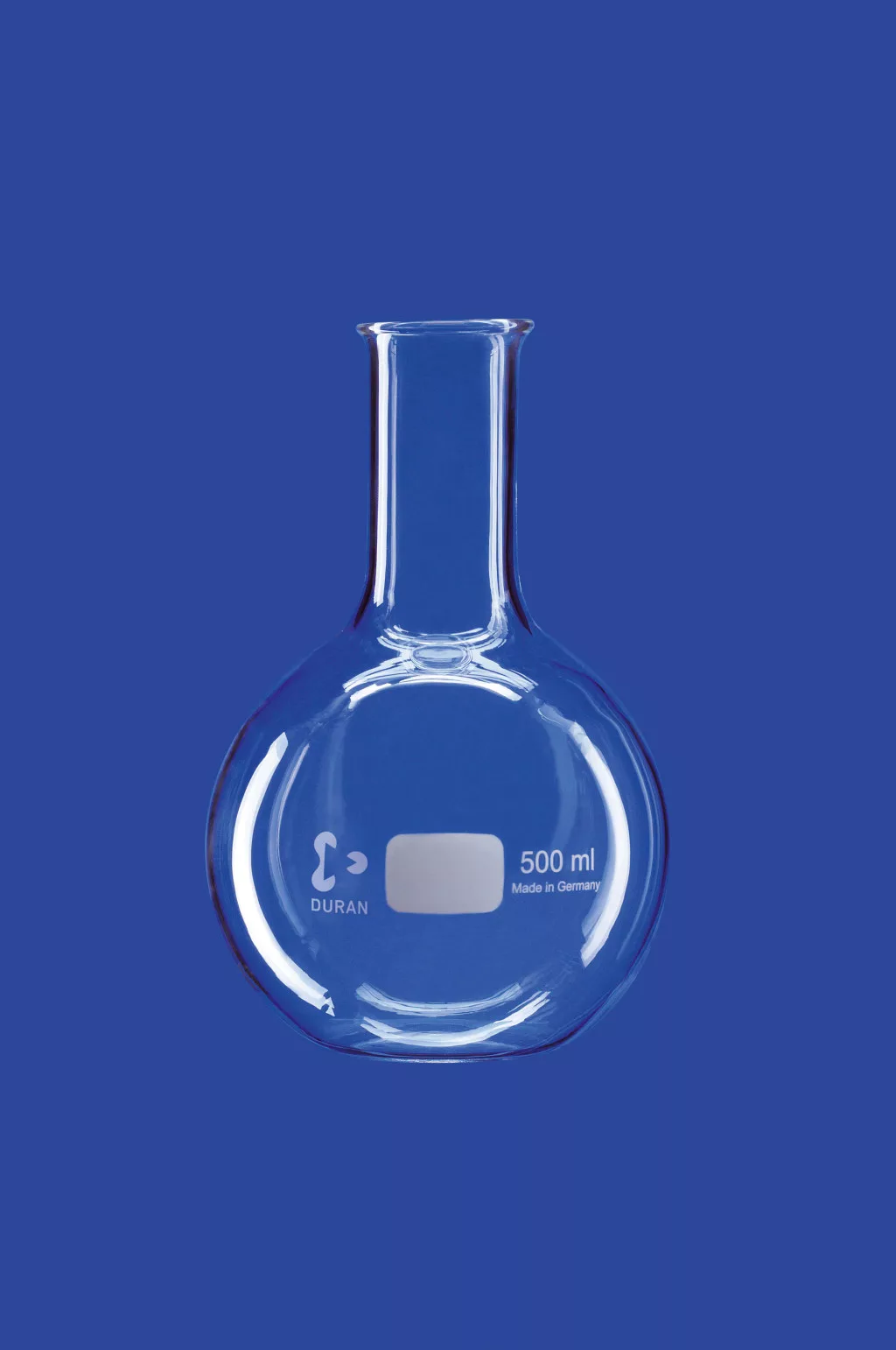 Lapos aljú lombik, keskeny nyakú, 5.000 ml-es, gyöngyös peremű, DURAN®