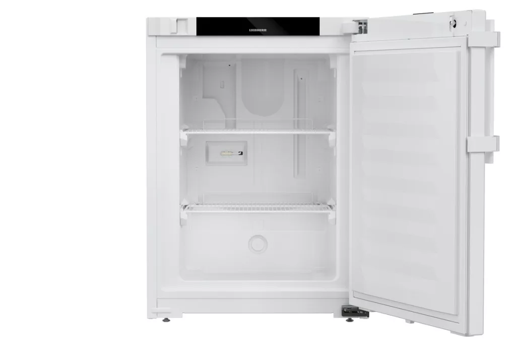 bruttó 101 literes, pult alá helyezhető laboratóriumi mélyhűtőszekrény (IEC 61010-2-011 megfelelőség); statikus hűtési rendszer (SmartFrost - szigetelésbe habosított elpárologtató - technológia); zárható teli ajtó; hűtési tartomány: -9/-30°C között; ajtóba integrált érintőgombos monokróm kijelző; digitális - 1/10 fok pontos - hőmérsékletkijelzés; tesztelhető és testreszabható optikai és akusztikus riasztási funkciók: túl magas/alacsony belső hőmérséklet, ajtó nyitva maradás és áramkimaradás - az áramellátás helyreállásával -, továbbá érzékelőhiba esetén (-20°C-os biztonsági üzemmód); integrált adatmemória: elmúlt időszak (kb. 42 nap) min/max. hőmérsékleti értékeinek eltárolása és kijelzőn történő megjelenítése; 1 ponton történő hőmérséklet kalibrálás: beállított és tényleges belső hőmérséklet közötti különbség 0,1°C pontosságú állítási lehetősége, 1 hőmérsékletre; feszültségmentes érintkező, központi riasztórendszerre csatlakoztatható; SmartModule kompatibilis (
