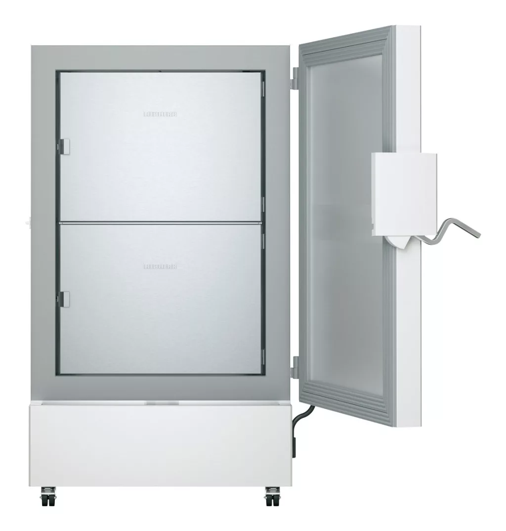 bruttó 728 literes ultraalacsony hőmérsékletű mélyhűtőszekrény; két kompresszoros, kaszkád hűtőkör; statikus hűtési rendszer (padlóba, mennyezetbe, hát- és oldalfalakba habosított elpárologtató); zárható teli ajtó; hűtési tartomány: -40°C/-90°C között; mikroprocesszoros vezérlőelektronika; digitális - 1/10 fok pontos - hőmérsékletkijelzés, szöveges kijelző; tesztelhető, testreszabható optikai és akusztikus riasztási funkciók: túl magas/alacsony belső- és környezeti hőmérséklet, ajtó nyitva maradás, áramkimaradás, továbbá érzékelőhiba (biztonsági üzemmód), túl meleg kondenzátor, meghibásodott kompresszor, alacsony töltöttségű vagy hiányzó akkumulátor esetén; biztonsági hőmérséklet érzékelő (elsődleges hőmérséklet érzékelő meghibádosásának esetére); integrált adatmemória: az utolsó 110.000 (max. 76 nap, legfeljebb 1 percenkénti mintavétel) hőmérsékleti érték, valamint az utolsó 200 riasztási esemény eltárolása dátummal és pontos idővel; 1 ponton történő hőmérséklet kalibrálás: beállított és tényleges belső hőmérséklet közötti különbség 0,1°C pontosságú állítási lehetősége, 1 hőmérsékletre; áramszünet esetén a vezérlés külső hálózattól független áramellátása és jeltovábbítás 72 órán keresztül a beépített 12V tölthető akkumulátor segítségével; feszültségmentes érintkező, központi riasztórendszerre csatlakoztatható; Ethernet csatlakozó, számítógépes felügyeleti rendszerre csatlakoztatható; USB csatlakozó, felhasználói profilok mentése és feltöltése, valamint hőmérsékleti és riasztási adatok lementése; alsó és felső termékhőmérséklet érzékelő szonda bemenet (validáló nyílás átmérő: 28 mm); belső hőmérséklet eloszlás egyenletessége (-80°C-on): ± 2,5 K; hőmérséklet ingadozás: ± 1,5 K; lehűlési idő +22°C-ról -80°C-ra: 450 perc; áramszünet esetén felmelegedési idő: -80°C-ról -60°C-ra: 250 perc, -80°C-ról 0°C-ra: 2220 perc; billentyűzár; fűtött nyomáskiegyenlítő szelep; léghűtéses kondenzátor (ventilátor); kívül fehér színű porszórt acél burkolat; rozsdamentes acél belső burkolat; 2 db leszerelhető, rozsdamentes acél belső ajtó; 3 db 860x590 mm méretű, rozsdamentes acél polc (polcok maximális száma: 13); padló táróló; a polcok magassága 24 mm-ként állítható; polconkénti terhelhetőség: max. 50 kg; készülék maximális terhelhetősége: 200 kg; maximális tárolási kapacitás: 50 mm kryoboxok: 528 db, 75 mm-es kryoboxok: 336 db, 2ml-es minták: 42.768 db; a jobbos nyitás iránya nem megfordítható; higiénikus, cserélhető, többrétegű, kettős ajtószigetelés; integrált nyitómechanizmusos alumínium fogantyú; manuális leolvasztás (csurgalékvíz gyűjtő tálca és kifolyó); gördíthető kivitel (2 db hátső fix és 2 db első fékezhető, bolygó kerék); FCKW-FKW mentes hűtőközeg (R170 és R 290) és falszigetelés (180 mm vastag poliuretán hab és VIP-vákuum szigetelő panel); külső környezeti hőmérséklet: +16/+32°C között - 4. klímaosztály; éves energiafogyasztás: 2957 kWh; zajszint: 47 dB(A); hőleadás: 1224 kJ/h